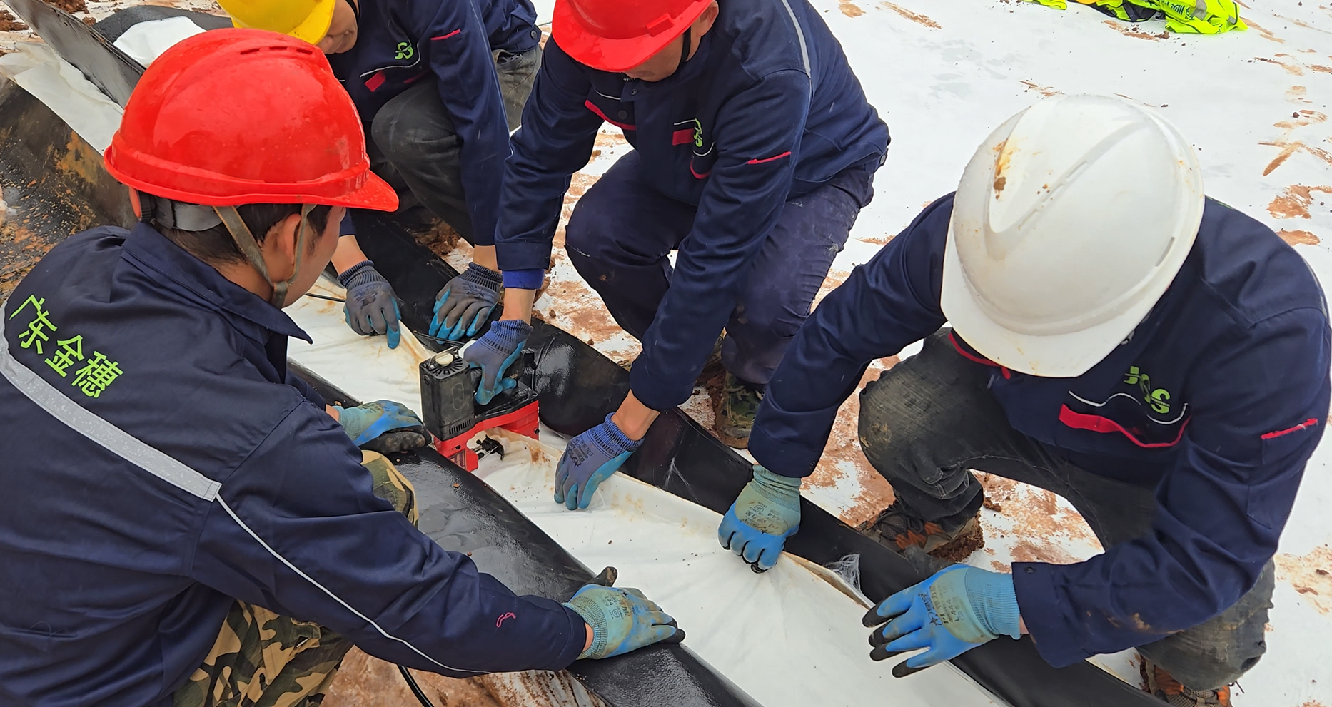 ▶ 应急池专用:适配市政应急储水、洪水应急截留、污染水临时存储等应急场景,契合应急工程“快速搭建、即时防渗”的核心需求。产品可根据现场尺寸定制裁剪,接缝采用热焊机双缝连接,接缝强度高,不易产生渗漏,搭配600g土工布铺设,无需额外复杂工序,专业施工团队可快速完成铺设,相较于同类产品施工效率提升30%,能够在紧急情况下快速筑牢防渗屏障,杜绝应急水体渗漏造成的二次污染,为应急处置工作保驾护航,如同应急工程中“地下雨衣”般,守住环境安全底线。在粤西本地应急防渗场景中,该组合同样表现突出:茂名市某环保项目设置320立方米事故应急池,采用高标准防渗措施保障应急存储安全,而我们的1.0mm糙面HDPE膜+600g土工布组合,可完美适配此类应急池的防渗需求,快速铺设、即时防渗,有效防范废水泄漏引发的环境风险;茂名市某食品企业设置350立方米事故应急池,用于应对废水事故排放风险,我们的专属组合可精准匹配其防渗要求,为应急处置工作筑牢地下防护盾,确保环境安全。