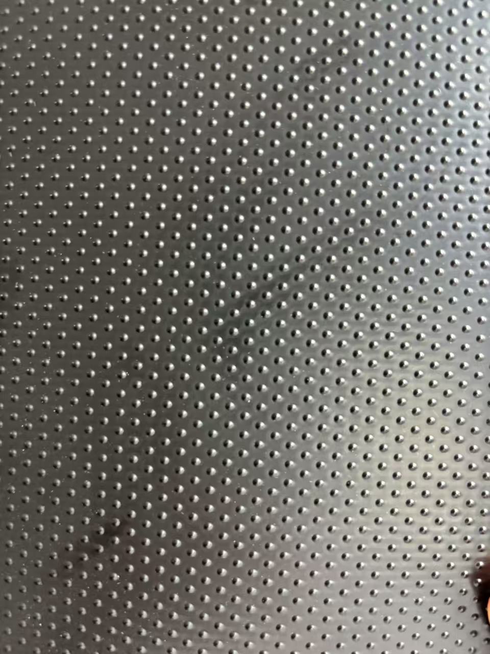 糙面土工膜:核心优势是防滑性能优异、稳定性强。它继承了光面土工膜的高防渗性,同时通过粗糙表面大幅提升了摩擦系数,能增强与土体、土工布之间的抓地力,有效防止土工膜在坡面、陡坡等有坡度的场景下滑。此外,其表面的凸起纹理形成微小空隙,透水性略优于光面土工膜,抗蠕变性能突出,在长期荷载作用下不易变形,适配复杂工况的能力更强,但施工时需更仔细,确保拼接处的密封效果。